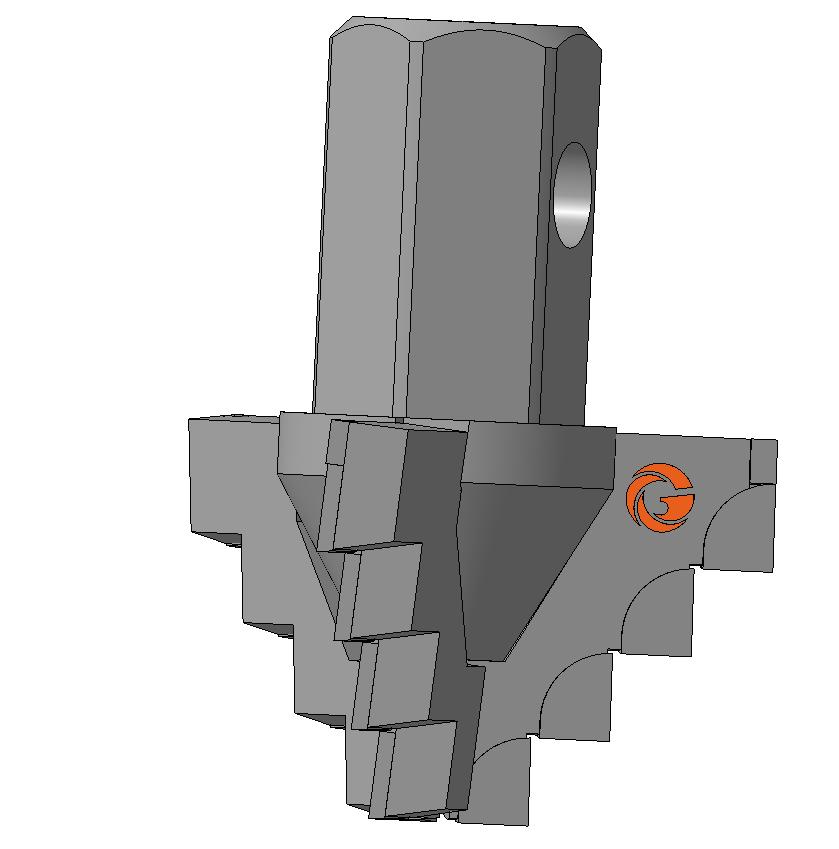 Ступенчатая форма режущей кромки долота обеспечивает более устойчивую работу долота, т.к. забой легче поддается разрушению ввиду наличия дополнительных плоскостей обнажения, что обеспечивает высокую скорость бурения и быстрое удаление разрушенной породы с забоя.